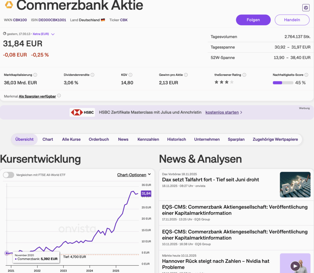 Ergebnis: Die Aktie stand zu diesem Zeitpunkt bei rund 5,30 EUR. Heute – fünf Jahre später – hat sie sich auf über 31,00 EUR verfünffacht.